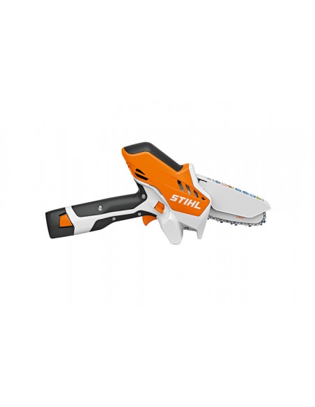 Agil mini podador de corrente a bateria. Para podar arvores e arbustos, cortar residuos verdes e para trabalhos em madeira. Com corrente PM3 1/4. para um alto rendimento de corte e preciso. Pega antiderrapante para uma ergonomia perfeita, substituicao da corrente sem necessidade de ferramentas, cobertura de protecao flexivel para um trabalho seguro, com indicador do estado da carga. O GTA 26 esta disponivel como kit completo ou como unidade individual.
