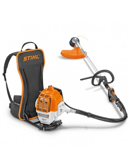 Foice a motor de mochila com motor 2-MIX. Respeita as normas europeias de de emissoes UE II. Ideal para trabalhos em encostas e terrenos dificeis, oferece excelentes resultados na tarefas de cortes mais exigentes.