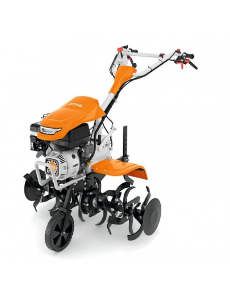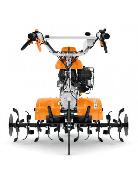 A excepcional moto-enxada a gasolina STIHL MH 700 e particularmente potente e ideal para trabalhar em grandes areas e solos pesados. Largura de trabalho das fresas de 100 cm. Duas velocidades para a frente e uma para tras asseguram uma propulsao precisa. Maquina de grande robustez. Tomada de forca para outros acessorios, engrenagem direta com embraiagem, rodas incluidas de serie, filtro de ar banhado a oleo, guiador ajustavel em altura e lateralmente.
