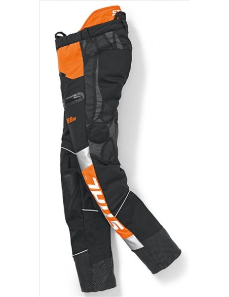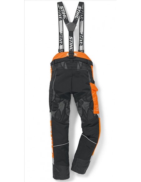 Com 6 camadas de proteccao anti-corte. Material ProElast para maior comodidade e flexibilidade entre pernas. Optimo para o arborismo em trabalhos profissionais e debaixo de condicoes extremas. Cores: negro e laranja de alta Visibilidade combinados com cor prata. Tecido interior de secagem rapida.Zonas com proteccao contra abrasao. Altamente transpiravel, material anti-corte AverticTM pro lite e repelente . agua. Bolsos com fecho. Suspensorios incluidos.